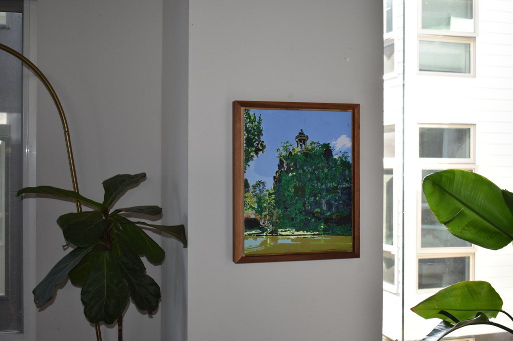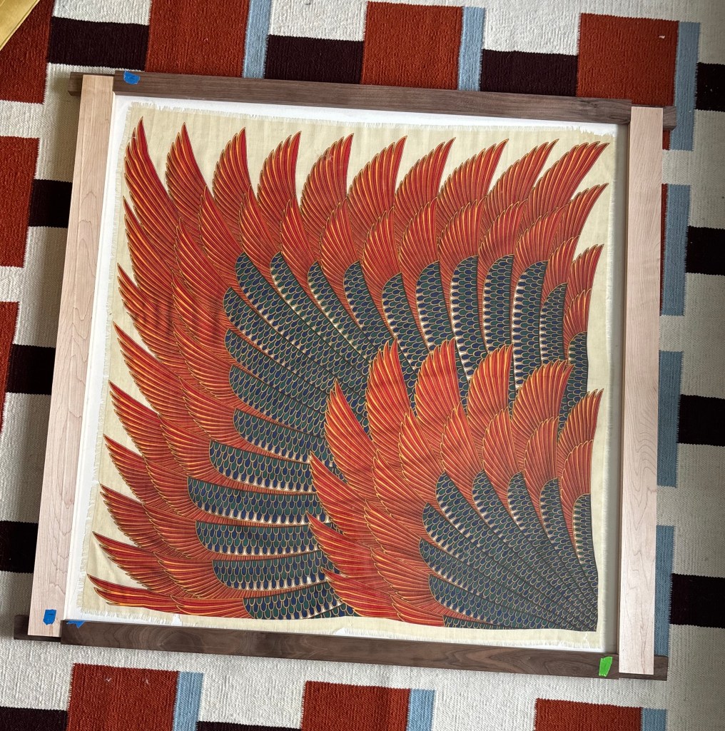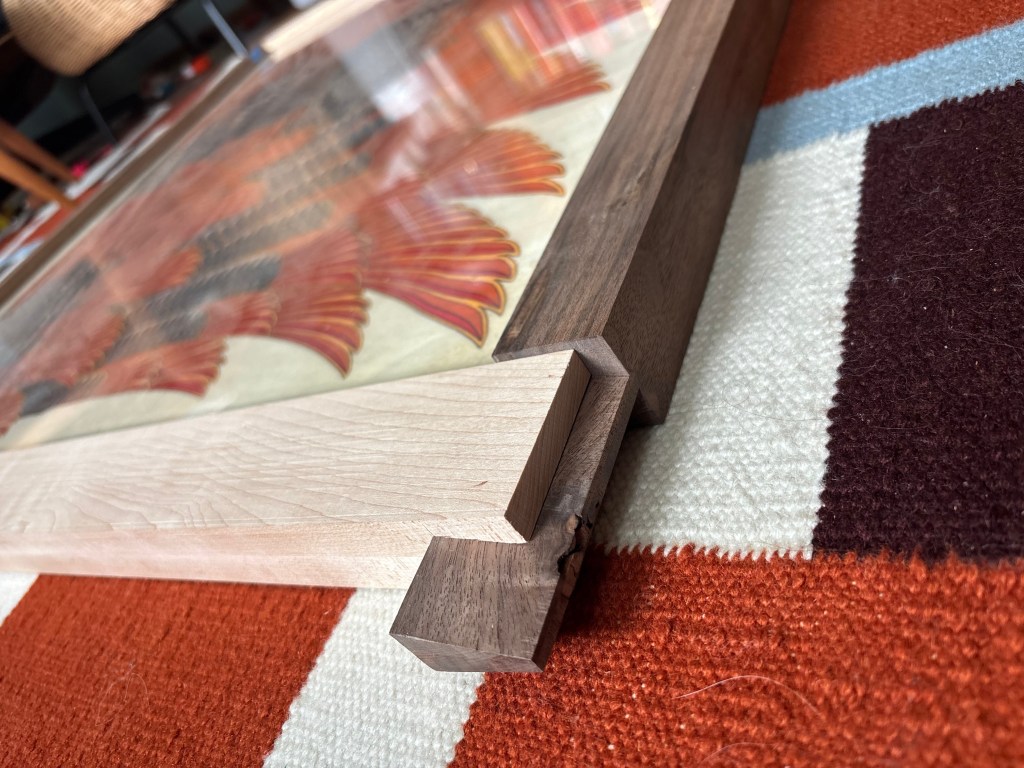 Through dovetail 3’x 3’ tapestry frame in walnut and maple